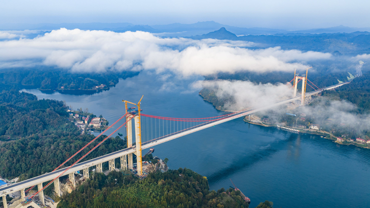世界最大跨径公路斜拉桥首对斜拉索成功安装 观音寺长江大桥公安侧开启吊索施工新阶段 -